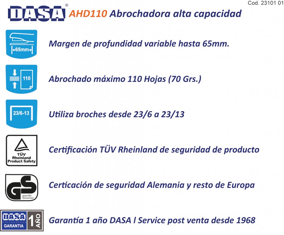 Capacidad máxima de abrochado 110 hojas (70 Grs)